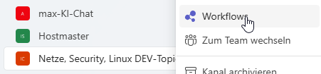 - Rechtsklick auf den Kanal → „Workflows“