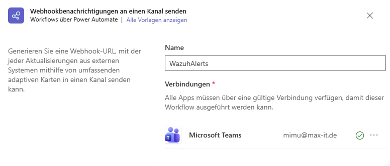 WazuhAlerts - Microsoft Teams Team: z. B.