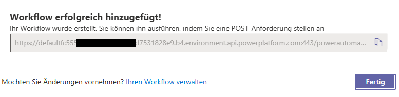 - Der Workflow postet eine Nachricht in einen Teams-Kanal